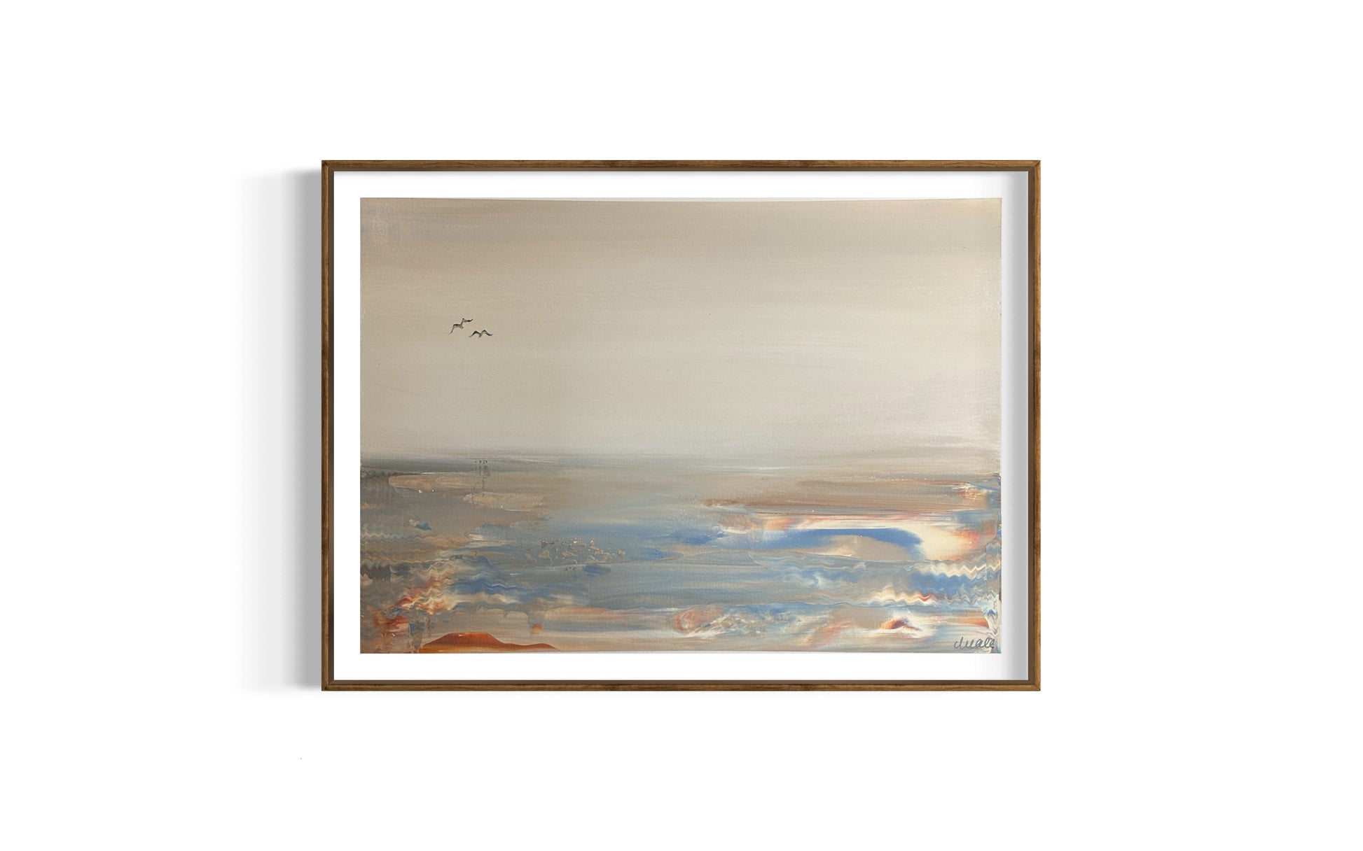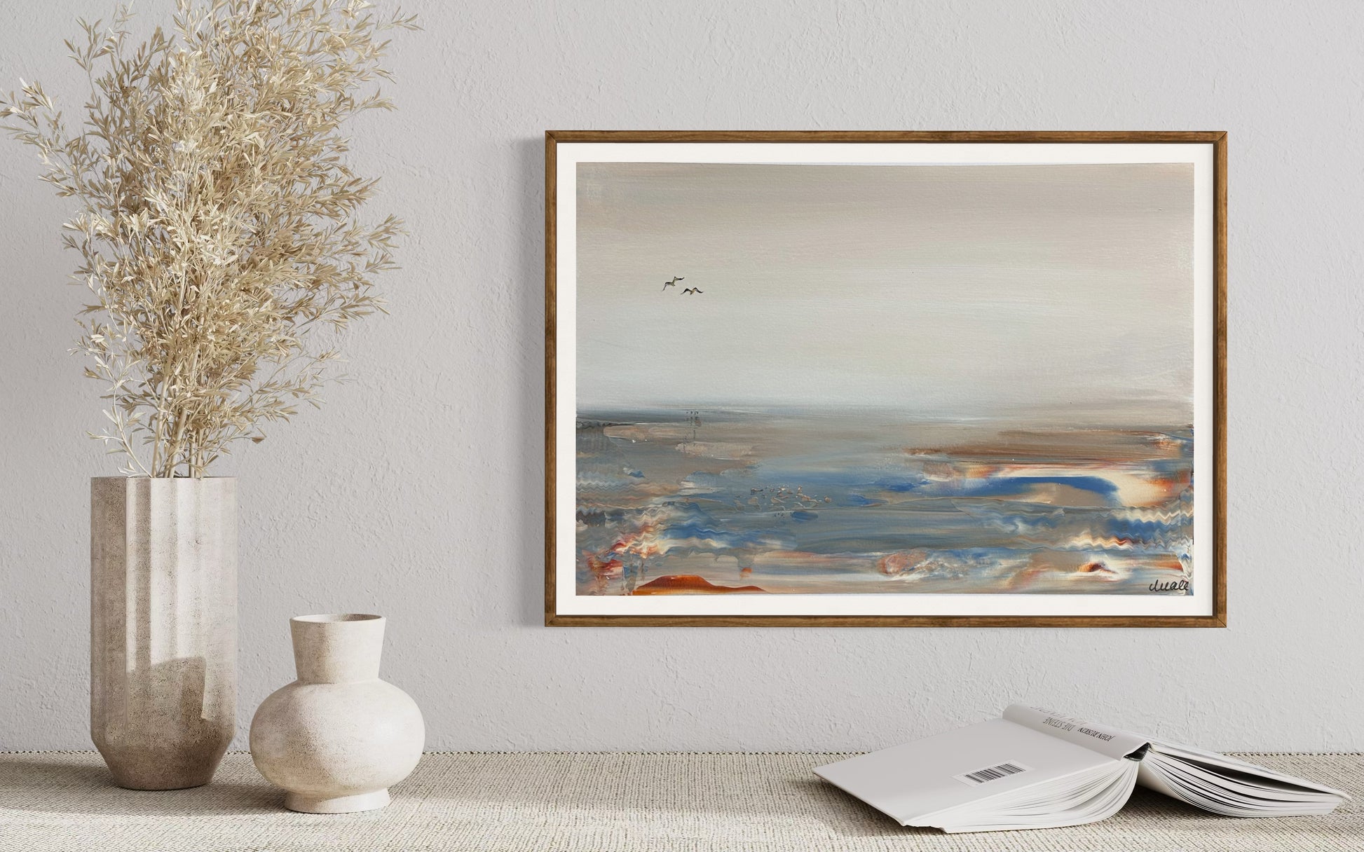 This A4 original acrylic artwork on artboard brings a sense of reflection and calm, making it a grounding piece for any space.